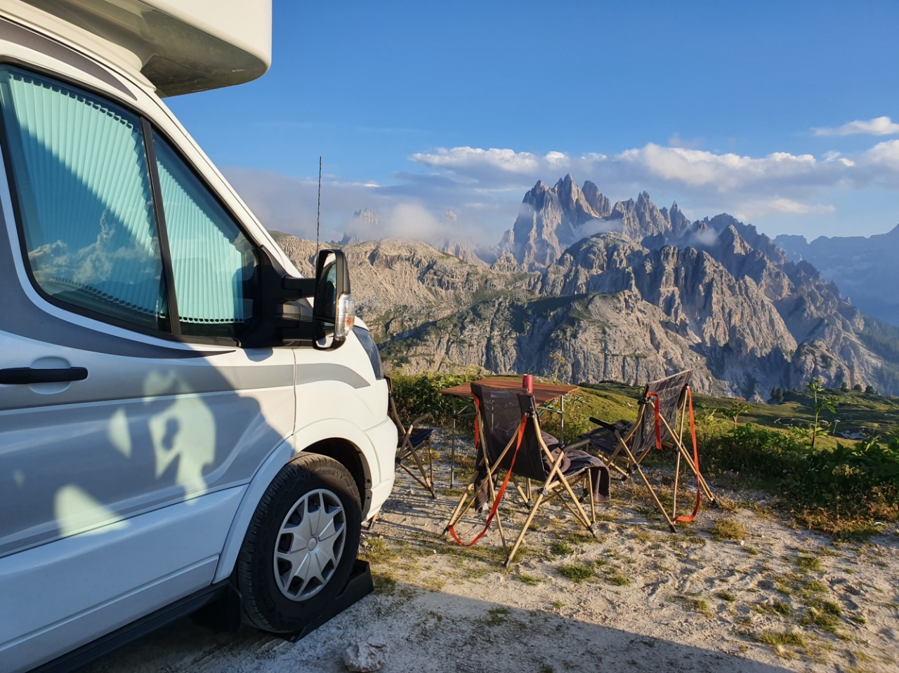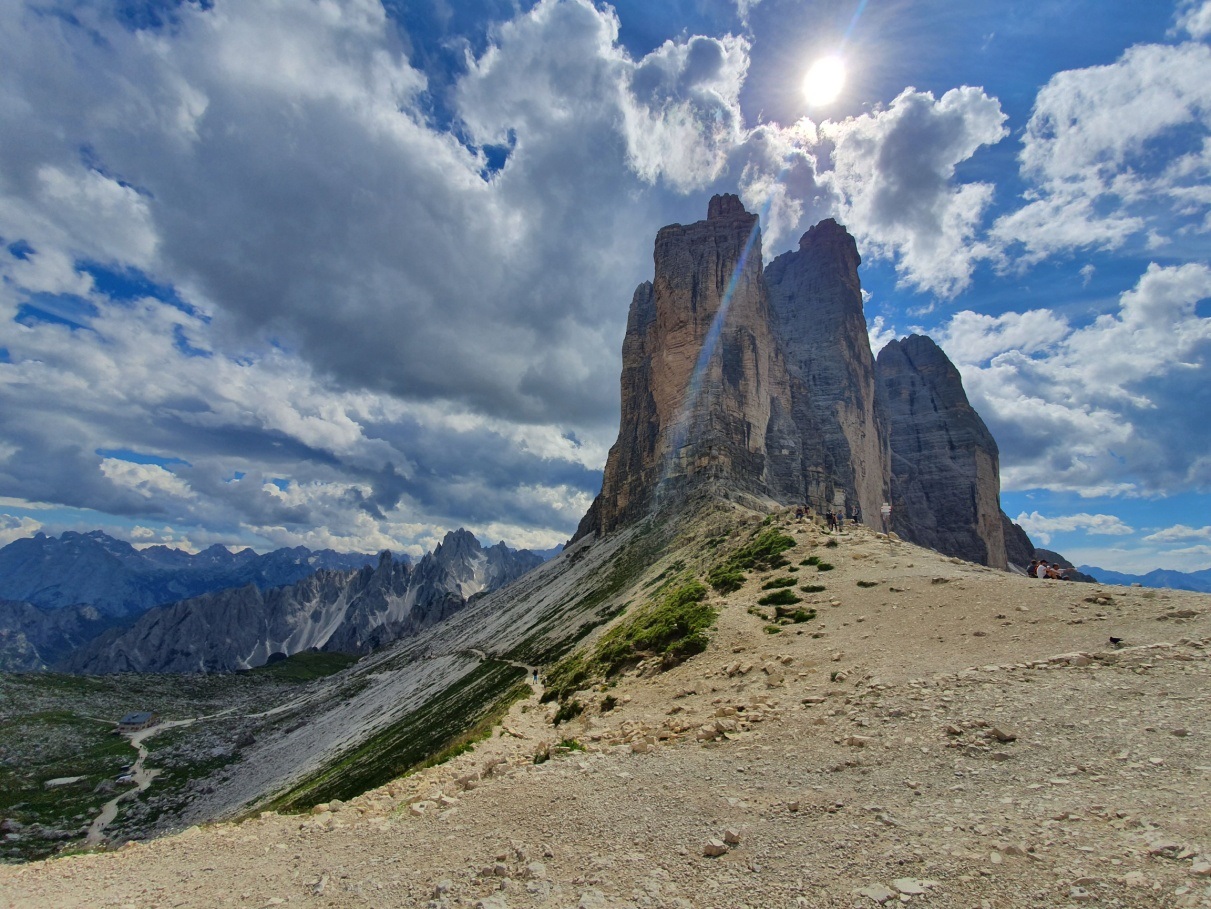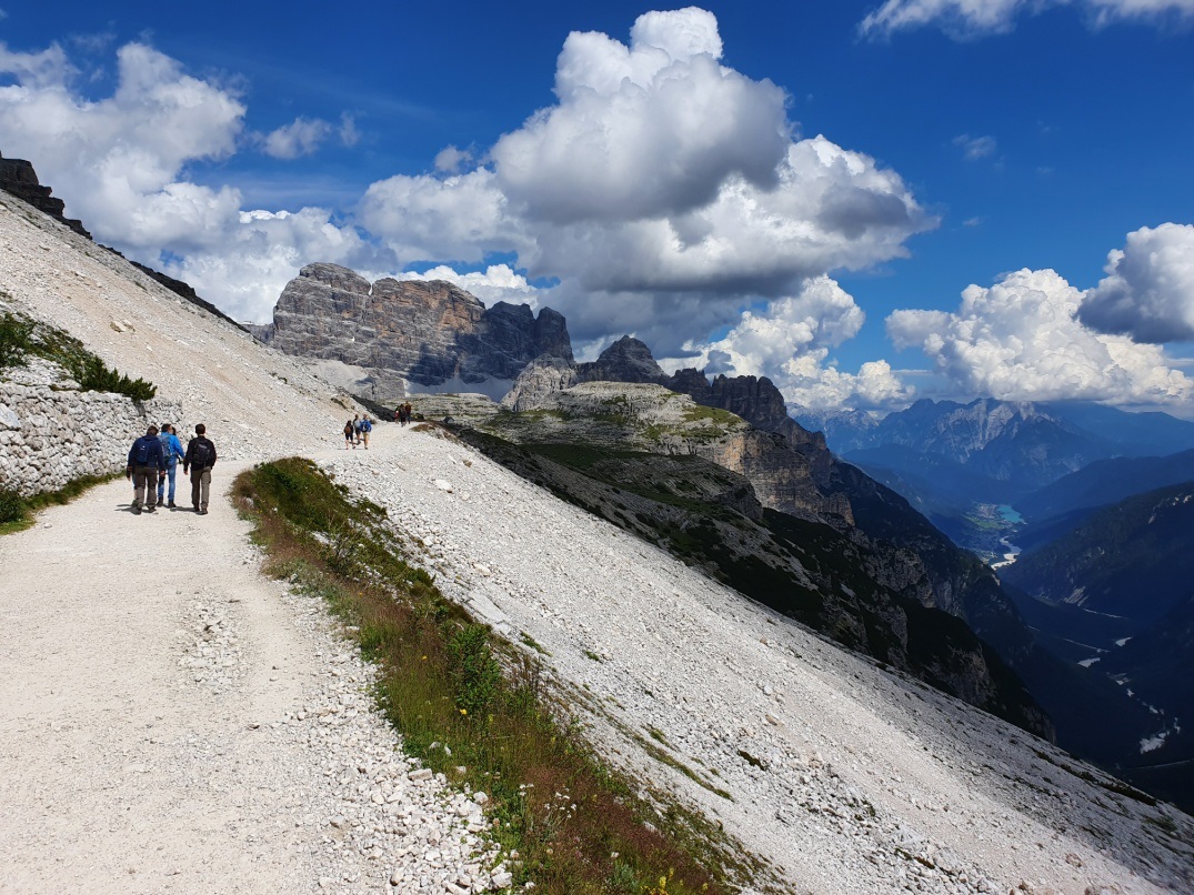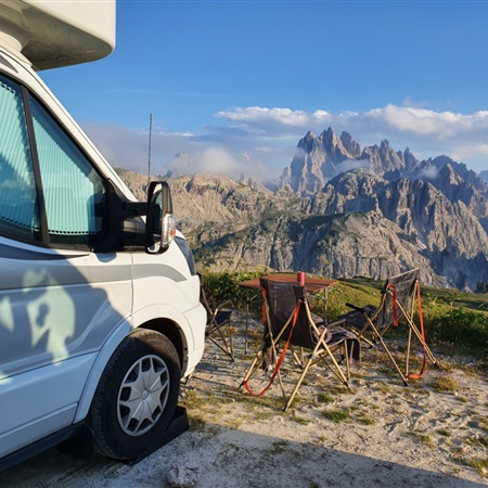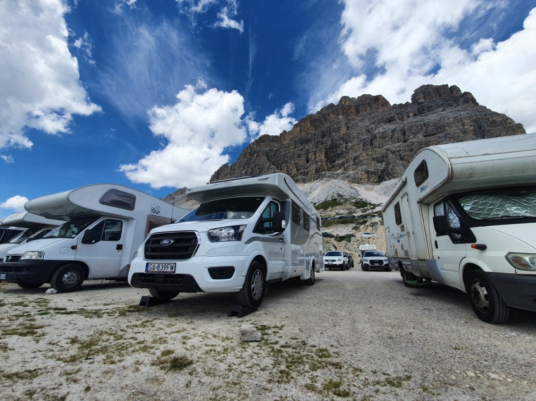 Trasa dookoła masywu górskiego Tre Cime jest bardzo prosta, początek w zasadzie wiedzie piaszczystą drogą, później trzeba się trochę powspinać do przełęczy, ale cała trasa jest mało męcząca, łatwa i bardzo widowiskowa. Zaskoczyło nas, że tak niewielu turystów mijamy po drodze, porównując z tym, jakie tłumy w wakacje przemierzają szlaki w Tatrach. Pytanie, czy to wina coronavirusa czy mniejsza niż w Polsce popularność górskich wycieczek? Wróciliśmy wieczorem, ugotowaliśmy w kamperze pyszną włoską pastę, po czym z kubkiem kawy i piwem zaczęliśmy delektować się górskimi widokami w świetle zachodzącego słońca.