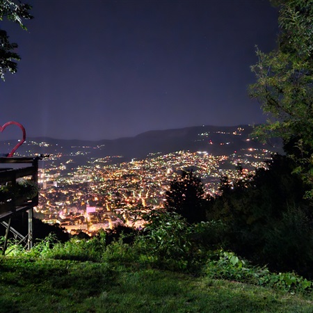 Zaparkowaliśmy kampera na przepięknie i bardzo wysoko położonym mini kempingu, bardzo kameralnym, takim na klika pojazdów. Prowadziła go przeurocza serbska gospodyni, uczynna, miła, fantastyczna. Ulokowała nas w takim miejscu, że przez panoramiczną szybą naszego kampera mieliśmy obezwładniający przepastny widok na centrum Sarajewa. Był tam też drewniany wiszący taras, zachęcający do spędzenia ciepłego wieczoru „z widokiem” i z własnymi myślami.