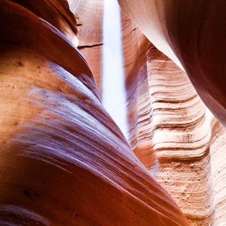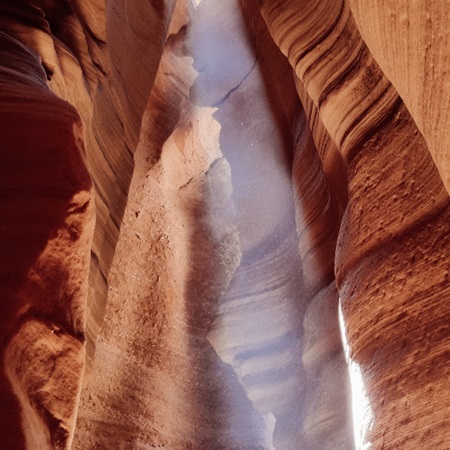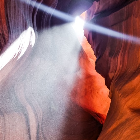 Spektakl rozpoczynał się. W kolejnych kameralnych komnatach kanionu ostre promienie słońca wpadały wąskimi szczelinami i rozświetlały rzeczywistość prawie do samej ziemi. Kilkunastometrowe kolumny światła, o krawędziach zdefiniowanych jak brzytwy robiły ogromne wrażenie. Panowała świątynna cisza i skupienie. Jedynym dźwiękiem, jakie można było usłyszeć były migawki aparatów i bicie serca.
