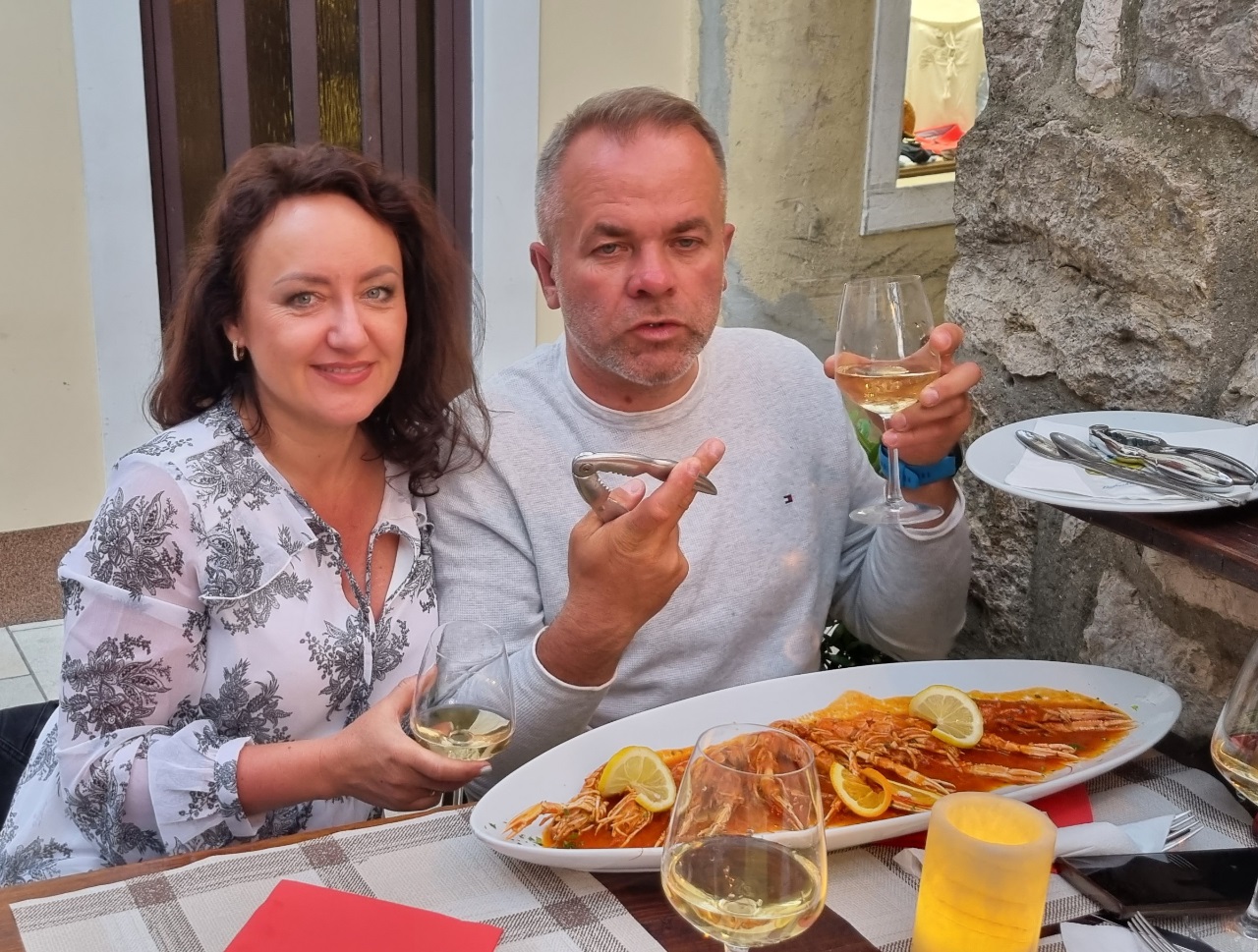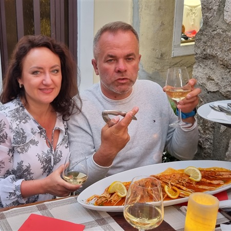 Kremser Greitbauer to mały rodzinny biznes, winnica i restauracja oferująca obezwładniający widok, na górzystą, porośniętą drzewkami winogronowymi okolicę. Około 300 km dalej na południe od Znojmo, w austriackiej Styrii, nie musieliśmy zbyt daleko zboczyć z naszej trasy, aby doświadczyć zarówno urzekających pejzaży jak i lokalnej kuchni, która była zdecydowanie mniej urzekająca ;) W opiniach w Google goście szeroko rozwodzą się na temat smaków, cudownych, fantastycznych, rozpływają się z zachwytu. Widać my nie do końca rozumiemy austriacką kuchnię, a zwłaszcza w zestawieniu z włoską, w kierunku której podążaliśmy :)