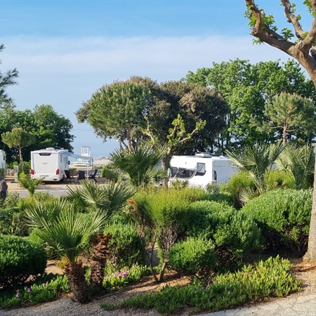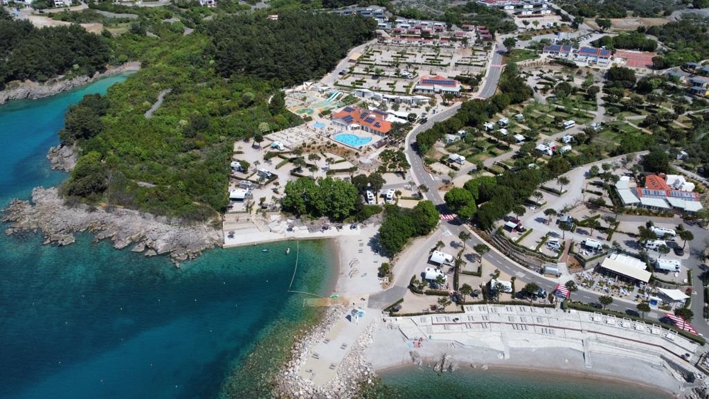 Kolejnego popołudnia zatem podążaliśmy już mostem łączącym stały ląd w Chorwacji w wyspą KRK. Kiedy wjechaliśmy na teren zarezerwowanego wcześniej kempingu naprawdę było czym cieszyć oczy. „Jakby luksusowo tutaj jest” wzdychaliśmy do siebie, ale ten luksus opierał się przede wszystkim na pięknie zaaranżowanej i zadbanej zieleni, widoku na bardzo spokojne Śródziemne, olbrzymim porządku przestrzennym i stworzonych kameralnych miejscach odosobnienia dla każdego kampera, tudzież namiotu. Postawiliśmy nasze pojazdy w pierwszej linii brzegowej i w ten sposób niezmąconym, ulubionym widokiem na morze napawaliśmy się dwa kolejne dni.