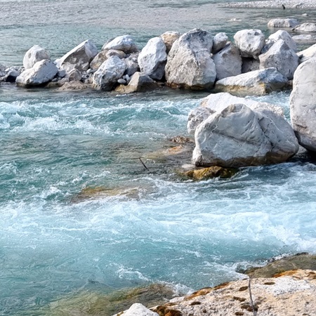 Tagliamento, to szeroka, roztokowa rzeka, wypełniona okrągłymi, prawie białymi utartymi kamieniami, niesionymi z pobliskich szczytów siłą natury, grawitacji, dużych różnic wysokości, mocnym prądem rzeki w górnych partiach i bardzo szerokim korytem na dole. Nie dość, że całe koryto wygląda zjawiskowo i jest tak szerokie i długie, że tworzy właściwie odrębną krainę geograficzną, to same otoczenie – Alp Julijskich w tle dopełnia spektakularności tego krajobrazu. Kiedy tylko wychodzi słońce, woda w rzece Tagliamento staje się kryształowo – turkusowa. Kiedy niebo zaciągnięte jest chmurami, wody rzeki przypominają mleko zabarwione na pastelowy niebieski i zielonkawy kolor.