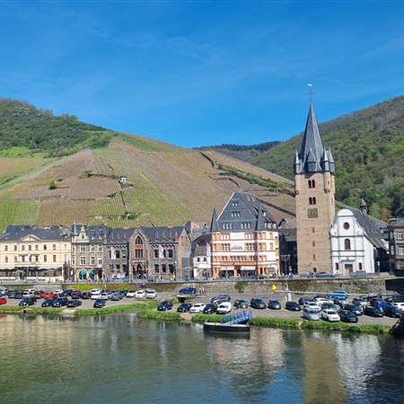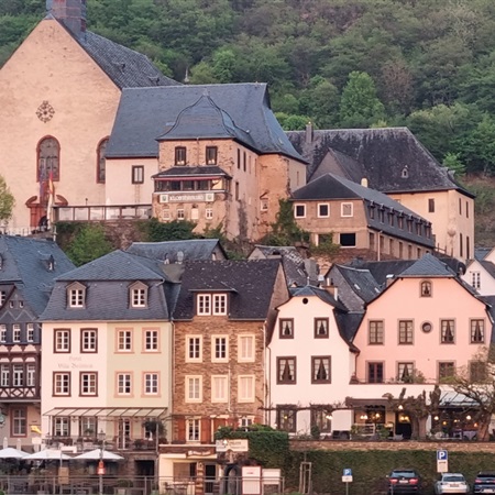 Miejscowość Cochem jest bajeczna. Można powiedzieć – instagramowa. Nad przybrzeżną zabudową góruje kamienny zamek Reichsburg. Z niego roztacza się piękny widok na okolicę. Idąc w stronę zamku przeszliśmy ulicami historycznej centralnej części miasta, a potem wspinaliśmy się wzdłuż przyzamkowej winnicy. Cała przygoda jest doświadczeniem romantyczno – winiarskim, w pięknych starych kamienicach znajdują się piwniczki z operatorami zachęcającymi do degustacji wspaniałego schłodzonego rieslinga. Wracając ze wzgórza zamkowego, w upale, stanowią właściwie automatyczne punkty obowiązkowe.