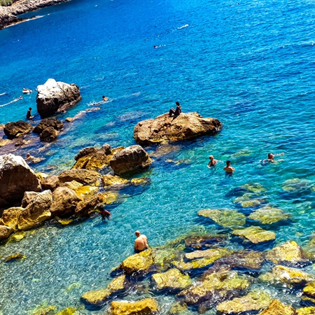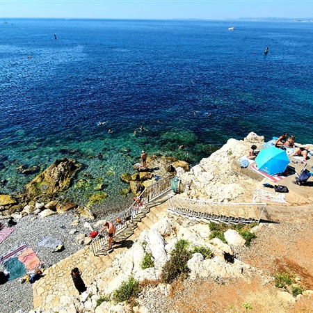 I wówczas wszystko wróciło na normalne, fajne wakacyjne tory. Miejscowość okazała się śliczna i o tej porze nieprzeludniona, a pobyt w niej rozpoczęliśmy od obowiązkowych owoców morza i szybkiej kąpieli w Śródziemnym. Jedno i drugie było wyśmienite.