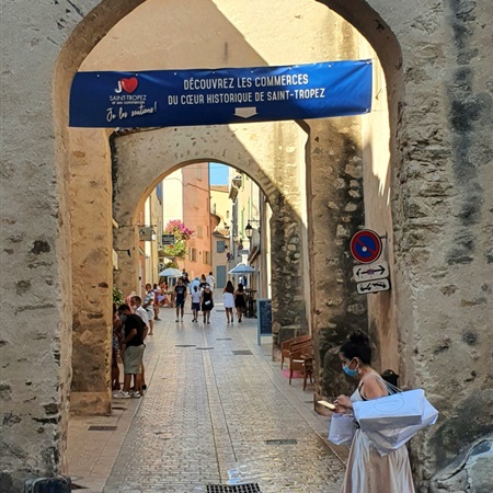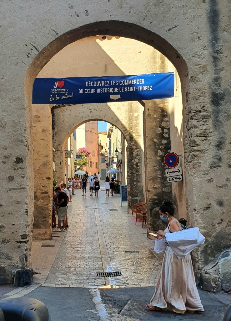 Cała Francja zdawała się w tym momencie przyjechać nad Lazurowe Wybrzeże, zupełnie nie przejmując się covidem. Kiedy tempo przemieszczania się spadło nam prawie do zera, postanowiliśmy zmodyfikować lekko plany i kolejny odcinek drogi pokonać autostradą. Jest położona trochę dalej od morza, ale teoretycznie zapewnia szybsze przemieszczanie się. Niestety i ona była istotnie obciążona samochodami. Zatem w okolicach półwyspu, na którym zlokalizowane jest Saint-Tropez znaleźliśmy się dopiero w godzinach późno popołudniowych, idealnych na poszukanie miłego oczom miejsca na obiad.