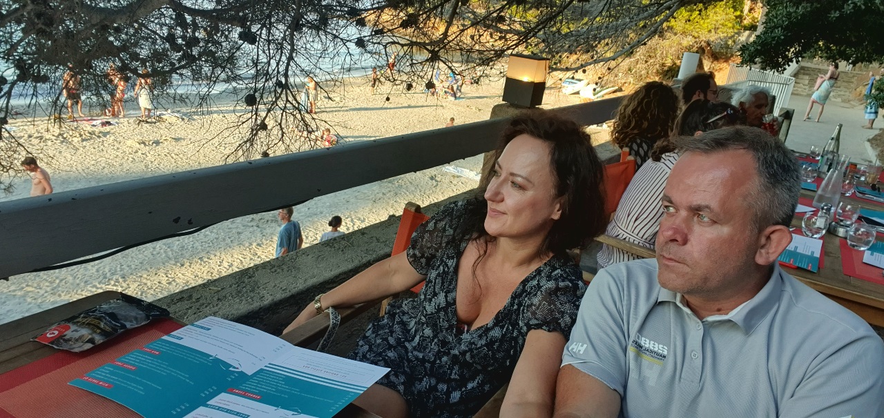 Restauracja na tarasie z widokiem na morze, uroczy mały hotelik i kameralna przy nim plaża stanowiły tak doskonale skomponowany zestaw, że Mikołaj zapragnął, abyśmy zostali w tym właśnie miejscu na noc, a do pobliskiego Saint Tropez wyruszyli dopiero kolejnego ranka. Dzięki temu mielibyśmy szansę o wschodzie słońca wskoczyć do morza i cieszyć się dłuższą chwilą świętego odizolowanego spokoju. Było w tym dużo rozsądku, jednak nasz niecierpliwy duch wyrwał nas stamtąd i pokierował późnym wieczorem do centrum Saint-Tropez. Nastawialiśmy się po prostu na inne wrażenia pobytowe. Życie pokazało, że tego samego wieczoru trzy razy jeszcze przyznałam synowi rację, że po prostu trzeba było tam zostać. Otarliśmy się tego wieczoru o ryzyko kłopotów, atmosfera niesprzyjających okoliczności zagęszczała się. W Saint Tropez nie mogliśmy znaleźć żadnego miejsca na nocny postój, nie znaleźliśmy go także w innych okolicznych miejscach wskazanych w aplikacjach jako bezpieczne i pewne. Mijały długie kwadranse, podczas których objechaliśmy zarówno niewielkie Saint-Tropez jak i okoliczne dziwne wąskie alejki, wskazane jako przeznaczone dla ruchu pojazdów, ale dla kampera zupełnie niewygodne i ciasne. Coś, co w dzień stanowiło by o uroku, w późnych godzinach stało się jakąś straszną nudą i udręką. Zaczynaliśmy się czuć jak kamperowy intruz, kiedy kolejny raz widzieliśmy znak z przekreślonym obrazkiem karawanu, który przeczył informacjom o możliwości noclegu ustalonego na podstawie informacji wcześniej wyczytanych w odpowiednich źródłach. W desperacji próbowaliśmy ulokować się w różnych dziwnych miejscach, spać na plaży za miastem, nawet poznaliśmy w tej nocy nowe, przychylne nam bardzo osoby, które zaangażowały się w organizację dla nas miejsca noclegu. Jednak ciągle to wszystko było nie takie jak miało, ani nie chcieliśmy łamać przepisów o zakazie kamperowania, ani też spać w mało urzekającym lub wręcz zupełnie nieprzyjaznym miejscu. Wróciliśmy do centrum Saint Tropez i podjęliśmy jeszcze jedną próbę odnalezienia ciekawego miejsca na nocleg. Nasza determinacja opłaciła się. Była już noc, kiedy ostatecznie zaparkowaliśmy na pewnym miejskim parkingu nad samym morzem, właściwie tuż przy samym historycznym centrum. Miejsce, które początkowo, kilka godzin wcześniej, z taką oczywistością odrzuciliśmy, uznając że skoro przeznaczone jest w ciągu dnia dla napływających hord turystów, to na pewno nas nie zadowoli, teraz nas wysoce usatysfakcjonowało. Stanęliśmy na prawie pustym placu, bezpośrednio przy wodzie, nad samym morzem, które właściwie było metr od nas, za kilkoma kamieniami… Obok nas stał tylko jeszcze jeden kamper.
