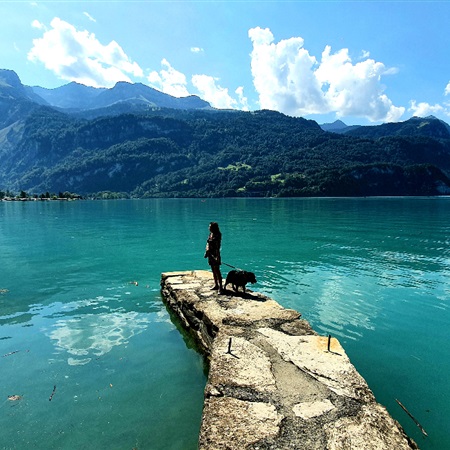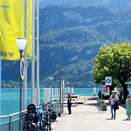 Co może człowieka zachwycić w takim miejscu bardziej niż autentyczny kontakt z piękną nieskazitelną przyrodą? Mnie, jako architekta, zachwyciła wspaniała nadwodna wielokilometrowa infrastruktura. Pozostająca całkowicie neutralną, jeżeli chodzi o ingerencję w krajobraz i naturę, a będąca jednocześnie niezwykłą, staranną przestrzenią publiczną. Cud! Nie mogłam wyjść z zachwytu. Podobało mi się wszystko, kolory, kamyki, czystość, spokój, mała architektura. Przystań, dworzec. Miejsca swobodnego pobierania miejskich składanych drewnianych leżaków z respektowaną przez wszystkich prośbą, aby po użyciu po prostu odstawić je na miejsce. Ludzie spożywający w stanie niezmąconego spokoju posiłki ze swoich przyniesionych pudełek. Cisza. Bajeczne kwiaty. Bocznokołowce ze szwajcarską banderą. Świeże, zdrowe górskie powietrze. Pełnia szczęśliwego lata.