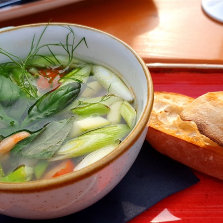 Potem zasiedliśmy w nadwodnej restauracji na porządnym bałtyckim obiedzie, czyli rosół rybny z dużą ilością aromatycznych jarzyn, ryba i boskie grube ręcznie cięte fryty.