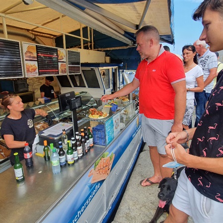 Bułki i napoje nabyliśmy w jednym z kilku barów zlokalizowanych na łodziach. Chwila nieuwagi i portfel wraz z bułą może podczas zakupu wylądować wodzie. Skonsumowaliśmy je na ławce przy kamperze, gapiąc się na wodę i było super.