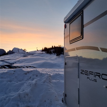 Radosny początek smutnej zimy. Każda zima jest dla mnie z definicji smutna. Wystarczy wspomnieć mokry śnieg zacinający prosto w twarz, ostre porywy wiatru porywające torbę z laptopem, buty rozjeżdżające się po chodniku i wszystkie inne straszne rzeczy towarzyszące chodzeniu zimą do pracy. Sytuacja potrafi diametralnie odmienić się tylko w takich sytuacjach jak ta, zapakowany kamper, narty, kijki, pyszne jedzenie i my – dojeżdżający razem na alpejski płaskowyż.