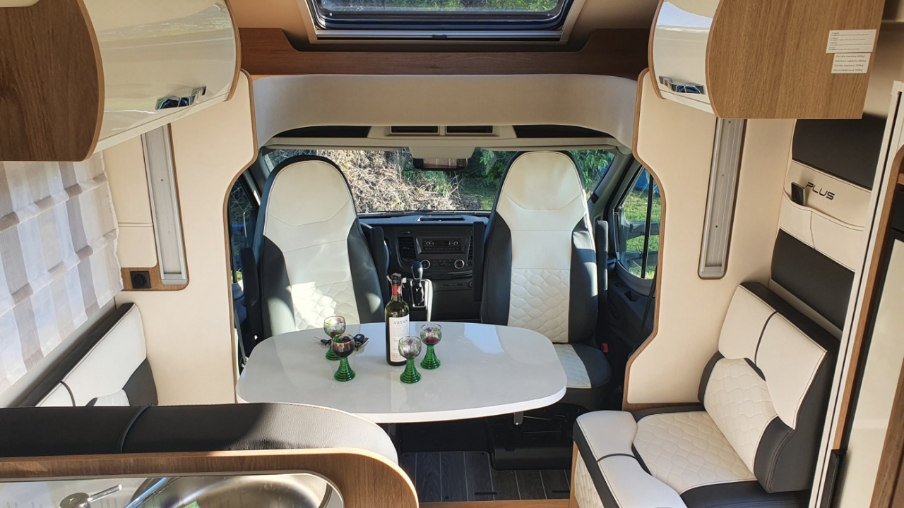 Zabudowa premium została wykonana na podwoziu nowego Forda Transita, którego nowa odsłona pozwala osobom nie mającym doświadczenia w prowadzeniu dużych samochodów, w bezpieczny i pewny sposób pokonywać długie dystanse – zarówno po autostradach, jak i pełnych uroku drogach bocznych. Nie bez pominięcia jest fakt wyposażenia samochodu w automatyczną skrzynię biegów wraz z dynamicznym 170 konnym silnikiem. Komfortowe spędzanie czasu w trakcie przebywania wewnątrz pojazdu ułatwi oddzielenie części sypialnianej od części dziennej, jak i przestronny prysznic z osobną łazienką. Samochód doskonale sprawdzi się w konfiguracji rodzinnej 2+2 ale bez problemu wygodne miejsce do podróżowania i spania znajdzie w nim 5 osób. Duży bagażnik pomoże pomieścić wszystkie potrzebne rzeczy aby czas spędzony na wyjeździe był maksymalnie wykorzystany w sposób jaki lubisz. Zestaw mebli i duża markiza dają doskonałą możliwość odpoczynku na łonie natury i kontemplowania otaczających krajobrazów, a postojowa klimatyzacja zadba o komfortowy sen w upalne wieczory.